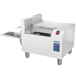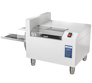 - Хлеборезка АХМ-300А представляет собой высокопроизводительное устройство для нарезки хлеба ломтиками разной толщины. Изготовлена из окрашеной стали. Неоспоримым преимуществом данного изделия является то, что при высокой производительности, оно режет хлеб идеально ровными ломтиками, не ломая и не кроша его. Это достигается за счет применения специальной стали при изготовлении ножа, а также благодаря формированию определенной режущей кромки ножа.Подходит для нарезки как суточного хлеба, так и свежего (мягкого). Хлеборезка предназначена для нарезки хлеба продолговатой формы типа «батон» и формового хлеба длиной до 380 мм и шириной до 160 мм одинаковыми по толщине ломтиками. Толщина ломтика может быть установлена в пределах 5–20 мм с помощью регулировочной скобы. Конструкция хлеборезки безопасна в обслуживании. Изделие оснащено выключателями, отключающими электрическое питание при открытии крышки лотка загрузки хлеба; окончании каждого цикла нарезки хлеба; открытии крышки приемного лотка для хлеба. Конструкция хлеборезки позволяет без особых усилий проводить регламентные работы по техническому обслуживанию или ремонту, что выигрышно отличает ее от образцов других производителей.