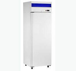 Холодильный шкаф c двумя стеклянными распашными дверями оснащен световым рекламным канапе. Цвет дверных рам — черный. Имеет температурный режим от +1 до +10°С. Оснащен 5 полками и внутренней подсветкой.