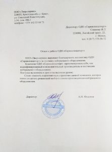 Отзыв о работе ОДО «Сервиспищеторг» от ООО «Эвер-сервис»